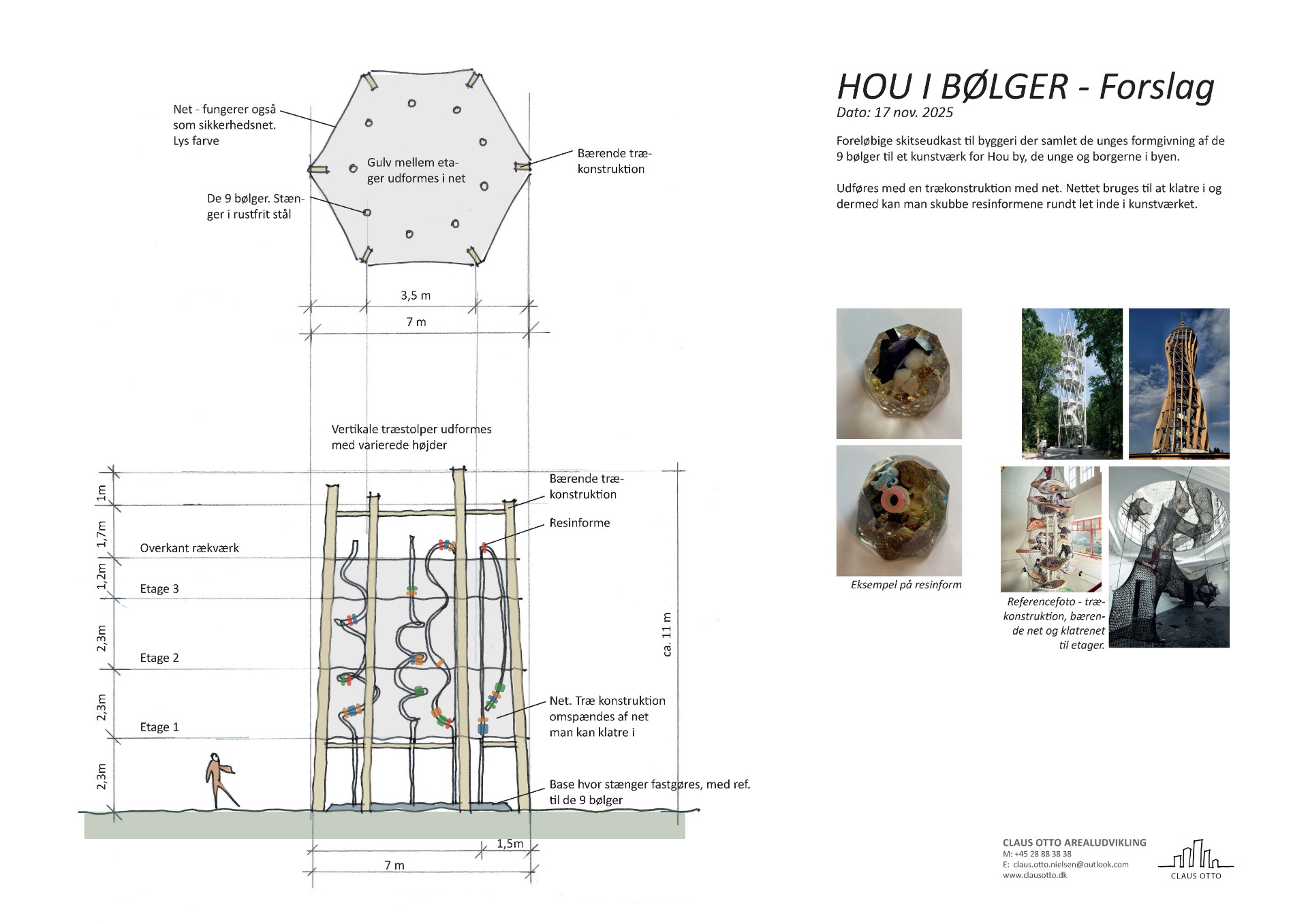 Foreløbige skitseudkast til konstruktion der samlet de unges formgivning af de 9 bølger til et kunstværk for Hou by, de unge og borgerne i byen.