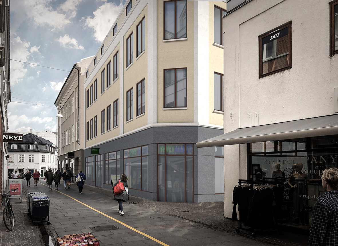 Indpasning af nyt byggeri i gågade-området i Aalborg. Bygningsvurdering, renoveringsvurdering og mulighedsstudie for byggeri på grunden.